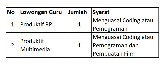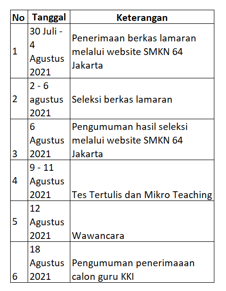 Pengumuman Rekrutment Guru Produktif KKI di SMKN 64 Jakarta
